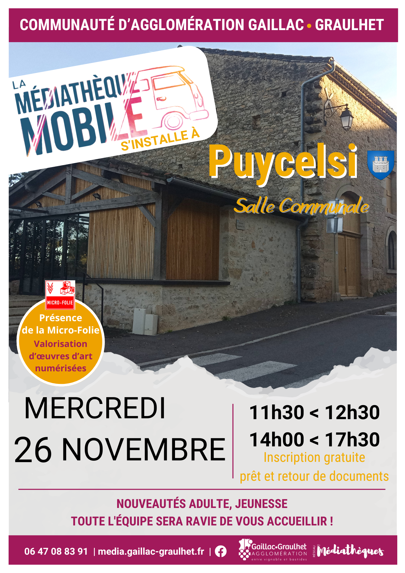 La médiathèque mobile s’installe régulièrement à Puycelsi au grand plaisir des lectrices et des lecteurs.