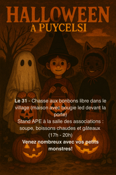 L’Association des Parents d’Élèves fête Halloween à Puycelsi le 31 octobre